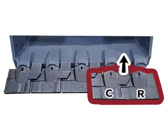 2) 最後に装着する【R】(右)は 【C】(中央)の1枚と組んだ状態にして 同時に装着 ★脱落防止の構造上、Rのみでの取付不可 ★横ピンタイプも同様の取付方法です |